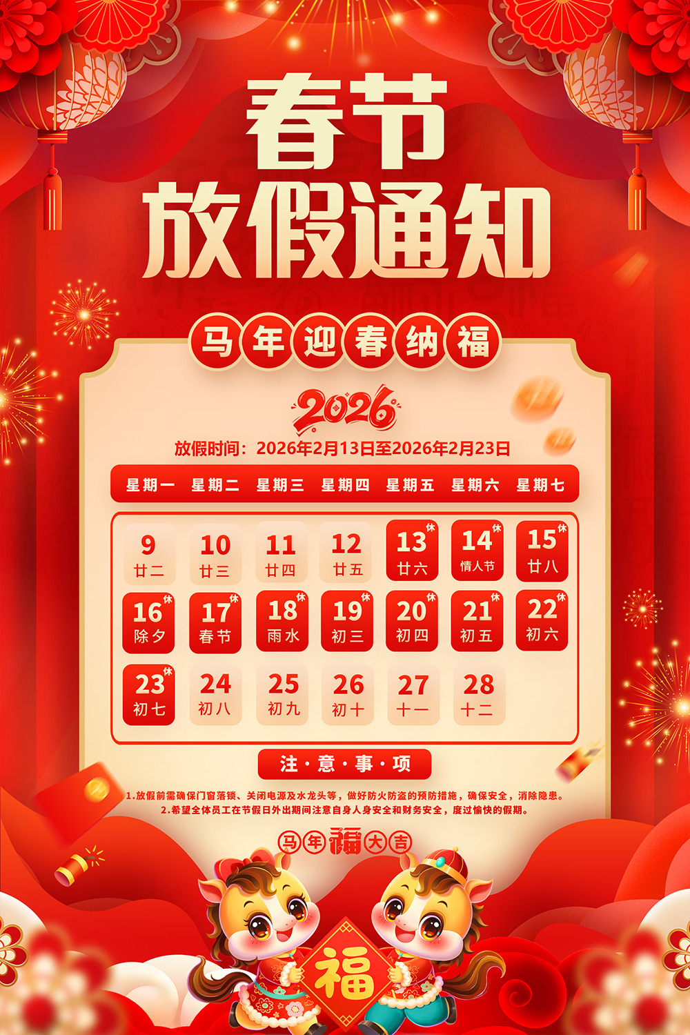 春节放假通知